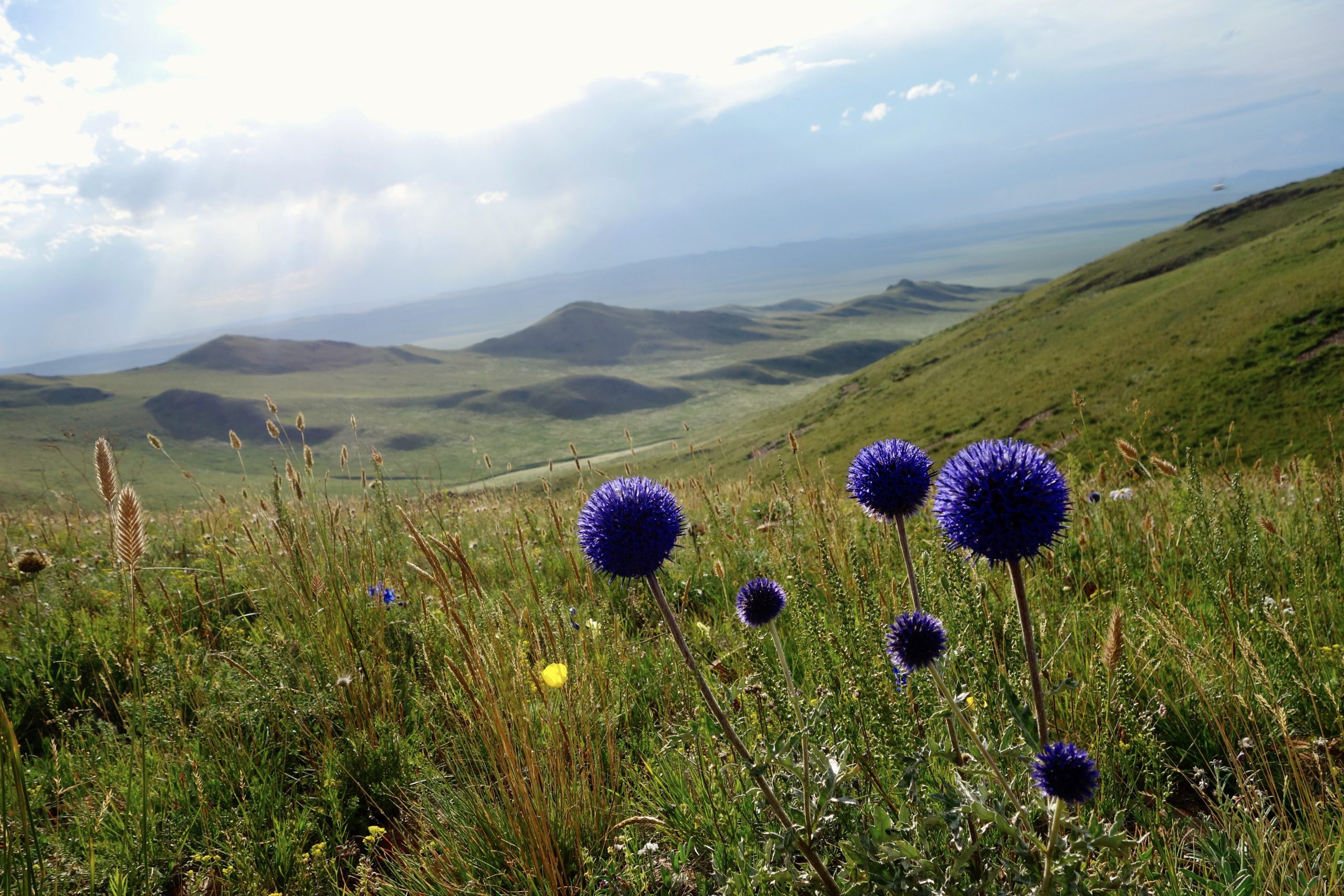 The grassland steppe in western Sukhbaatar Aimag in Mongolia (pictured above) is characterised by its vast, treeless plains, rolling hills and the seasonal appearance of its array of beautiful wildflowers during the Summer. 29 August 2013. Photograph: C.Pleteshner
